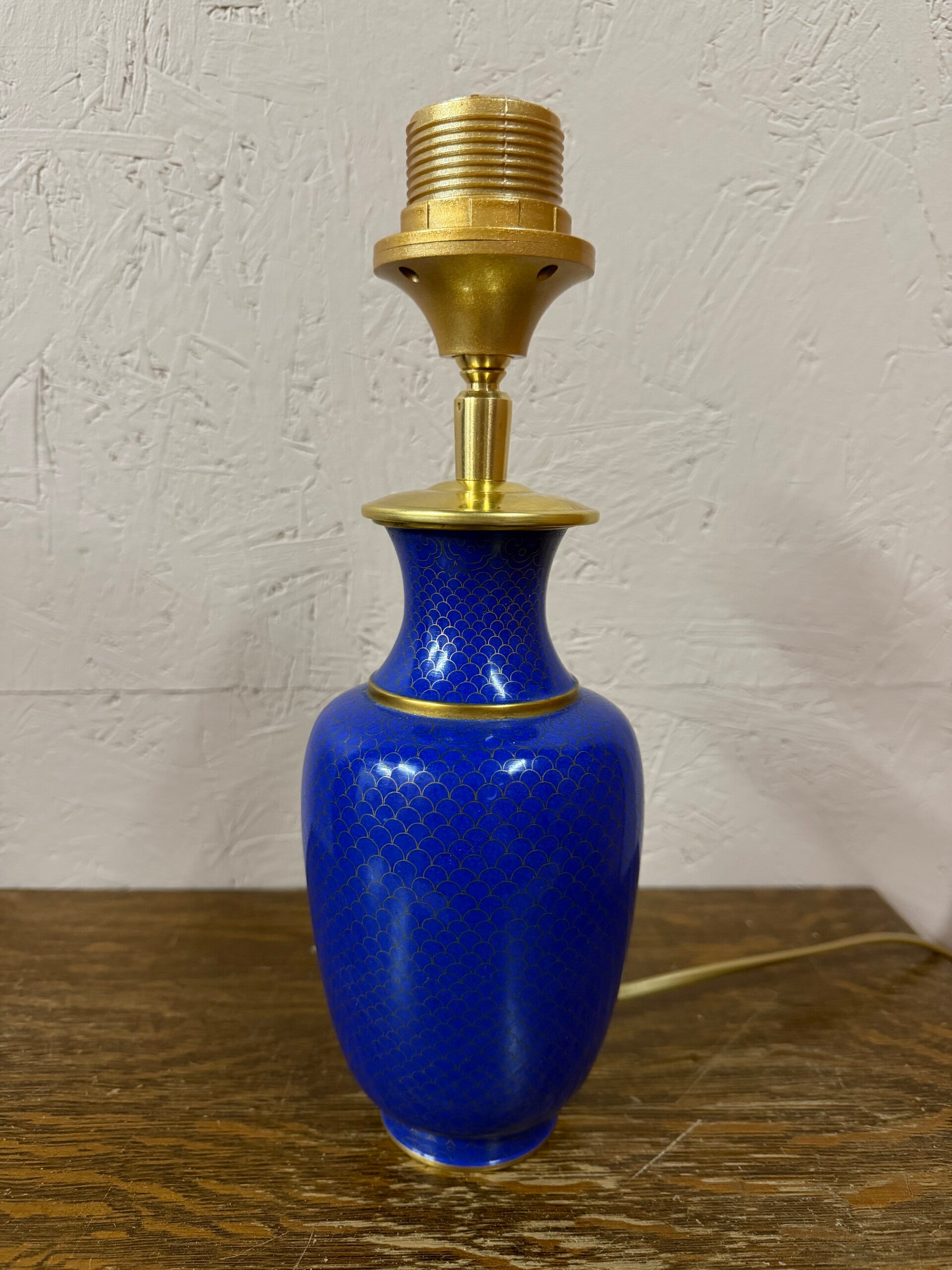Deze lampvoet is gemaakt van een bcloisonne vaasje. Hoogte tot aan de fitting: 22cm