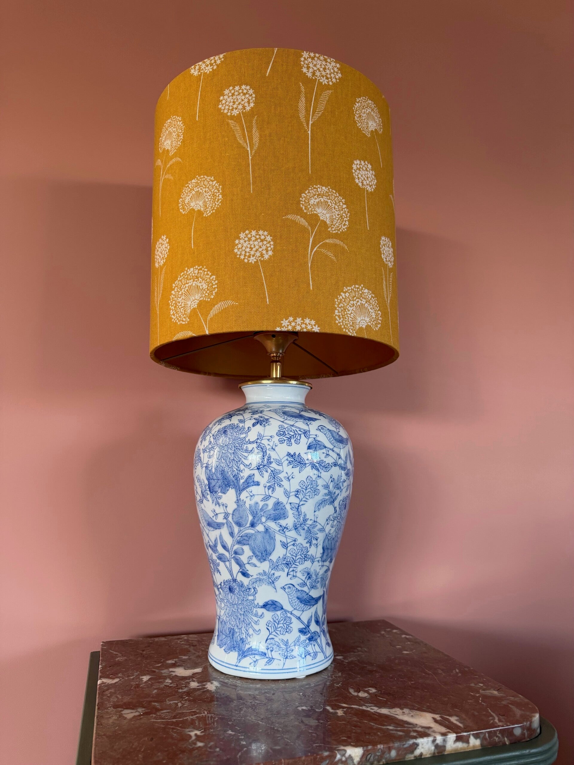 Deze stof is gemaakt van katoen maar heeft een linnenlook.De kleur is okergele met een paardenbloem print.